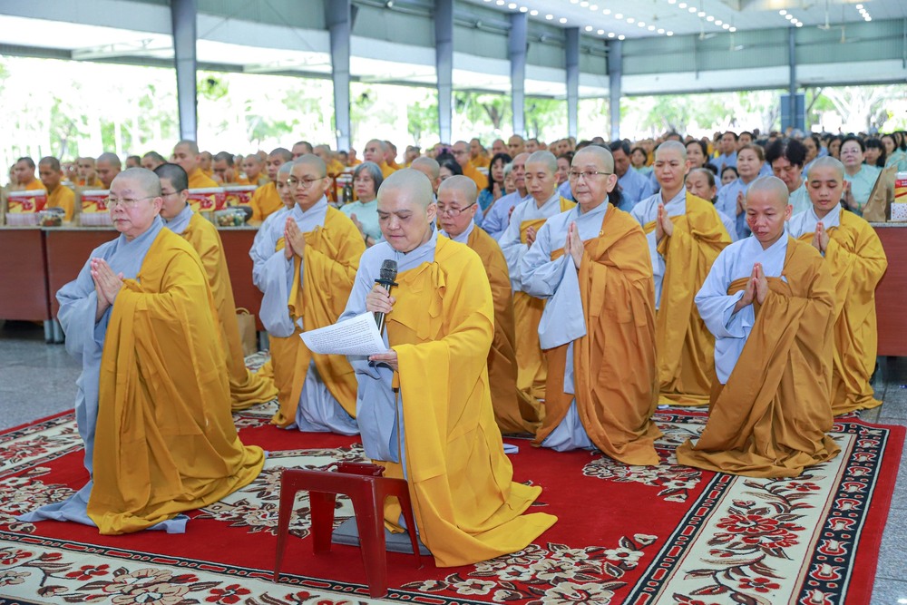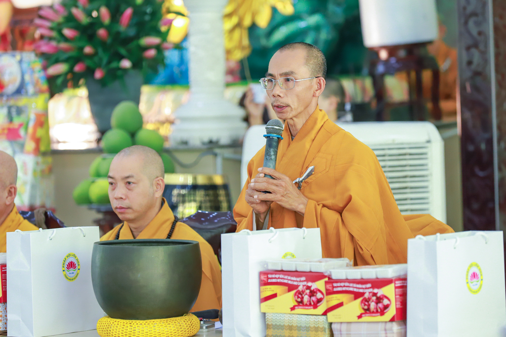 Thay mặt cho Ni sư Chơn Như – Trụ trì Thiền viện Vi Phước (Cần Thơ), đạo tràng Phật tử Thiền viện Vi Phước, đạo tràng Pháp hội Liên Hoa, đạo tràng chùa Thiên Quang, Ni sư Hương Nhũ dâng lời tác bạch. Ni sư đã trích dẫn Kinh Du Hành (Trường A Hàm) lời Phật dạy về một trong những pháp bất thối làm hưng thạnh Tăng đoàn: “Các Tỷ-kheo sống an trú trên chánh niệm tạo thành một cộng đồng sinh động, khiến cho các hành giả từ những phương khác, nếu chưa đến thì muốn đến, đã đến thì muốn cùng sống và cùng tu tập trong sự an lạc.” Từ đó, Ni sư bày tỏ niềm tri ân sâu sắc đến Hòa thượng Viện trưởng cùng chư Tôn đức Hội đồng Điều hành, Ban Giảng huấn đã tận tâm dựng xây Học viện từ vùng đất hoang sơ thành cơ sở uy nghi, trang nghiêm, xứng tầm là trung tâm đào tạo Tăng tài lớn nhất cả nước.