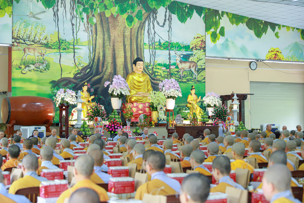 Ngày 16/8/2025, dưới sự hướng dẫn của Ni sư Hương Nhũ, đạo tràng Chùa Thiên Quang – TP. HCM (Bình Dương cũ) đã đến viếng thăm Học viện Phật giáo Việt Nam (cơ sở Lê Minh Xuân, TP. HCM), cúng dường 900 phần tự tứ đến chư tôn đức Hội đồng điều hành, giảng viên, ban quản viện và tăng ni sinh - hành giả an cư tại Học Viện.